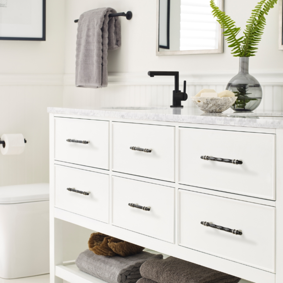 From the winding bed of Italy's Carrione River comes the coveted Carrara marble. Crafted by hand and balancing timeless beauty with clean contemporary style, this Carrara-inspired look takes new form in Amerock's Carrione collection.