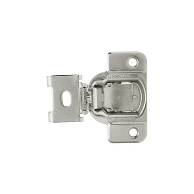 Amerock BP2811J2314 1/2 in (13 mm) Overlay Hinge Satin Nickel. Every Amerock functional hardware series item is tested for durability in conditions exceeding all KCMA certification requirements and BHMS standards for cycle life, strength and finish quality.