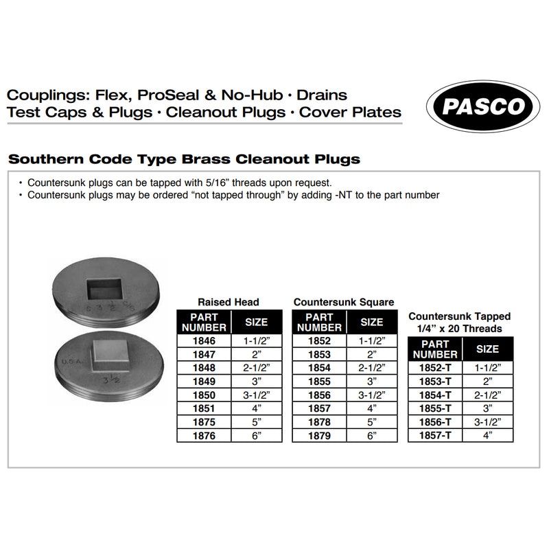 Pasco Brass Countersunk Square Southern Code Cleanout Plug - 4"