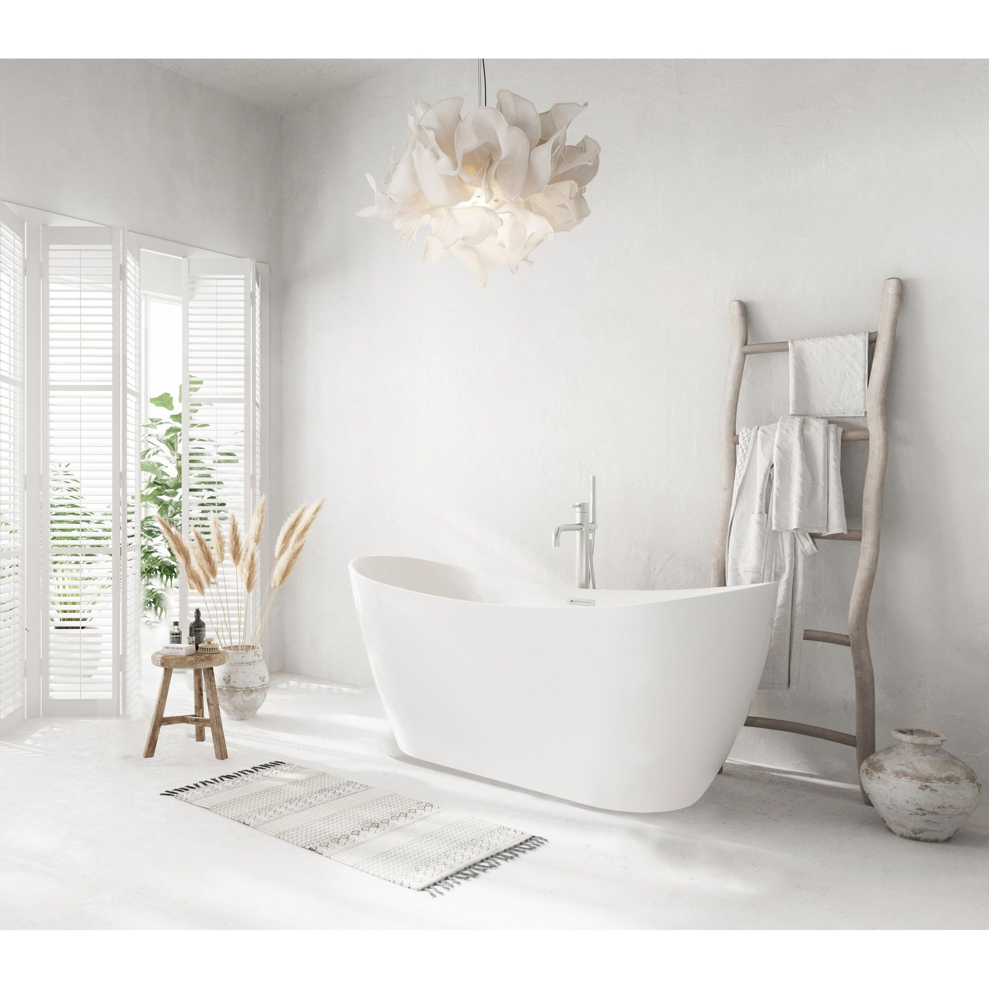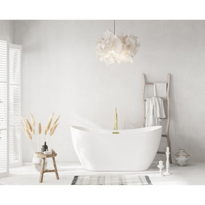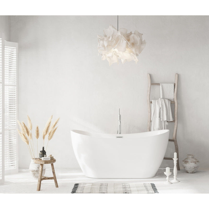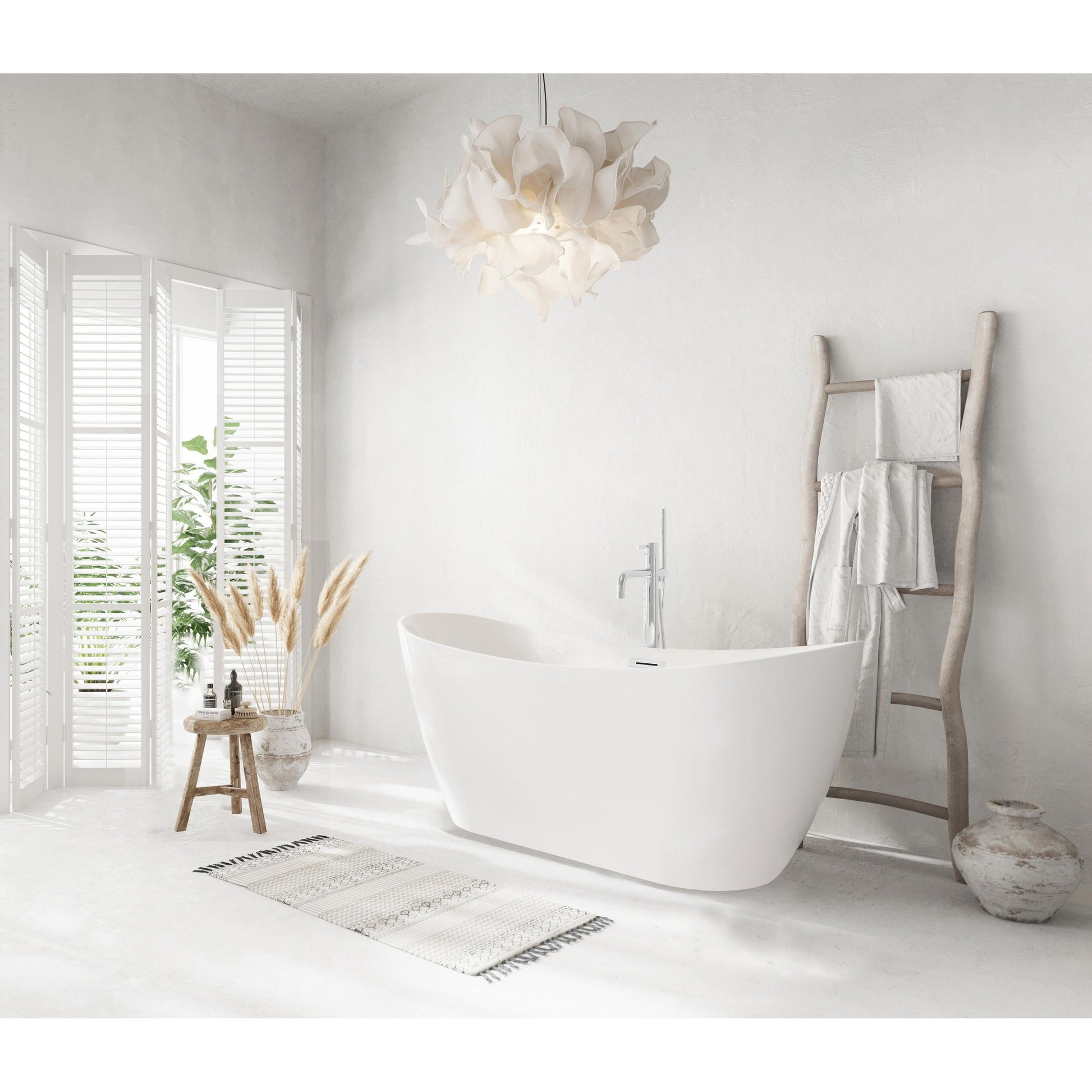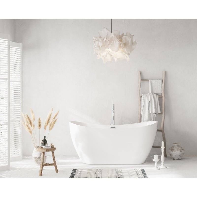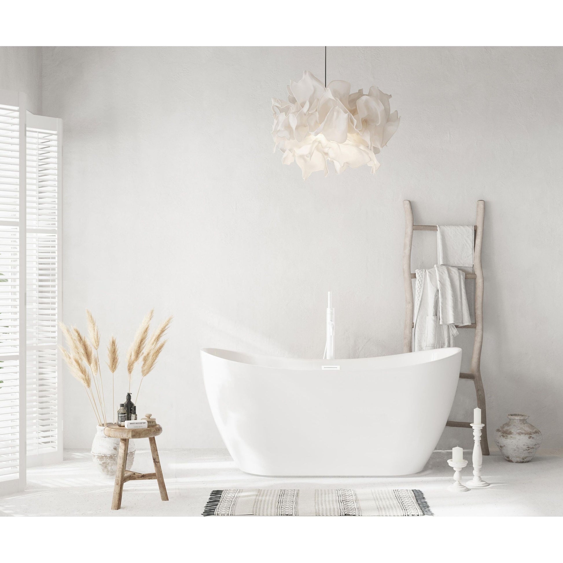 - The bathtub comes equipped with a 47-inch drain tube that attaches seamlessly to a 2.7-inch drain, with customizable drain trim finishes including brushed gold, brushed nickel, matte black, chrome, and polished white to complement your bathroom decor.