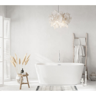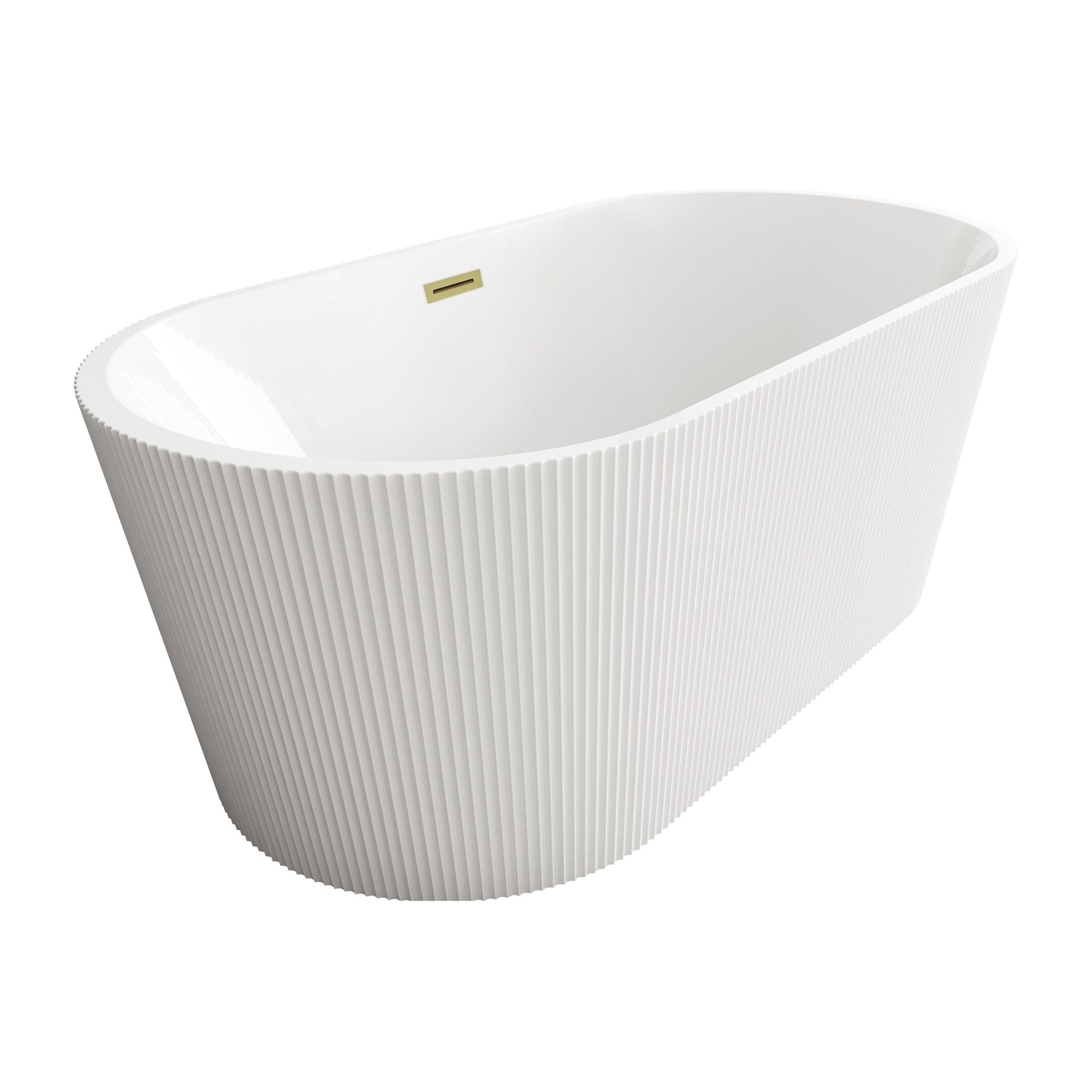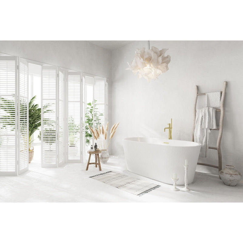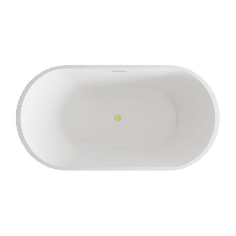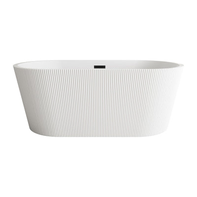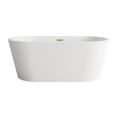 Immerse yourself in the ultimate relaxation experience with this elegant freestanding soaking bathtub, featuring a beautifully textured vertical fluted design that adds a touch of sophistication to your bathroom. The smooth, rounded rim offers comfortable arm support, making it the ideal spot to unwind. Equipped with a pop-up drain and integrated overflow, this tub seamlessly combines convenience and style. With a generous capacity and 15-inch soaking depth, it's perfect for those looking to indulge in a deep, luxurious soak. Available with customizable drain trim finishes like brushed gold, matte black, and more, this bathtub is designed to fit your unique style. Durable and easy to install with adjustable foot levelers, this tub is both a statement piece and a functional retreat in your home.