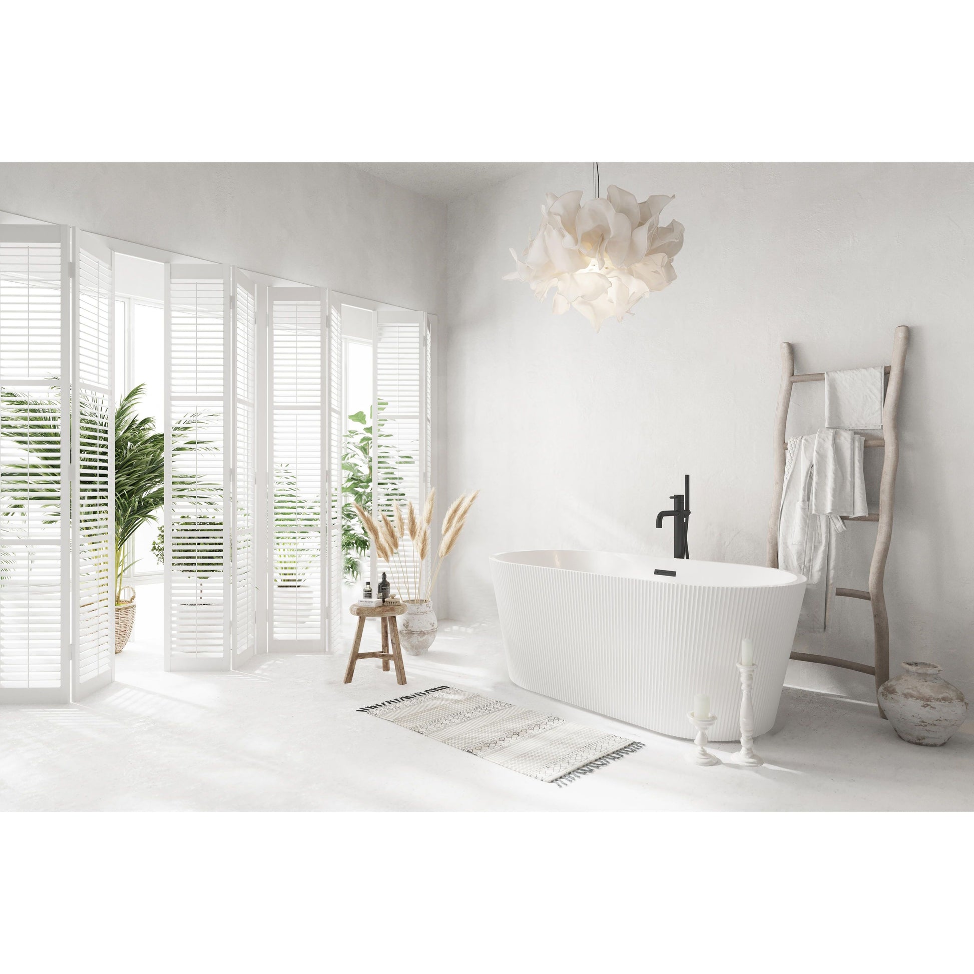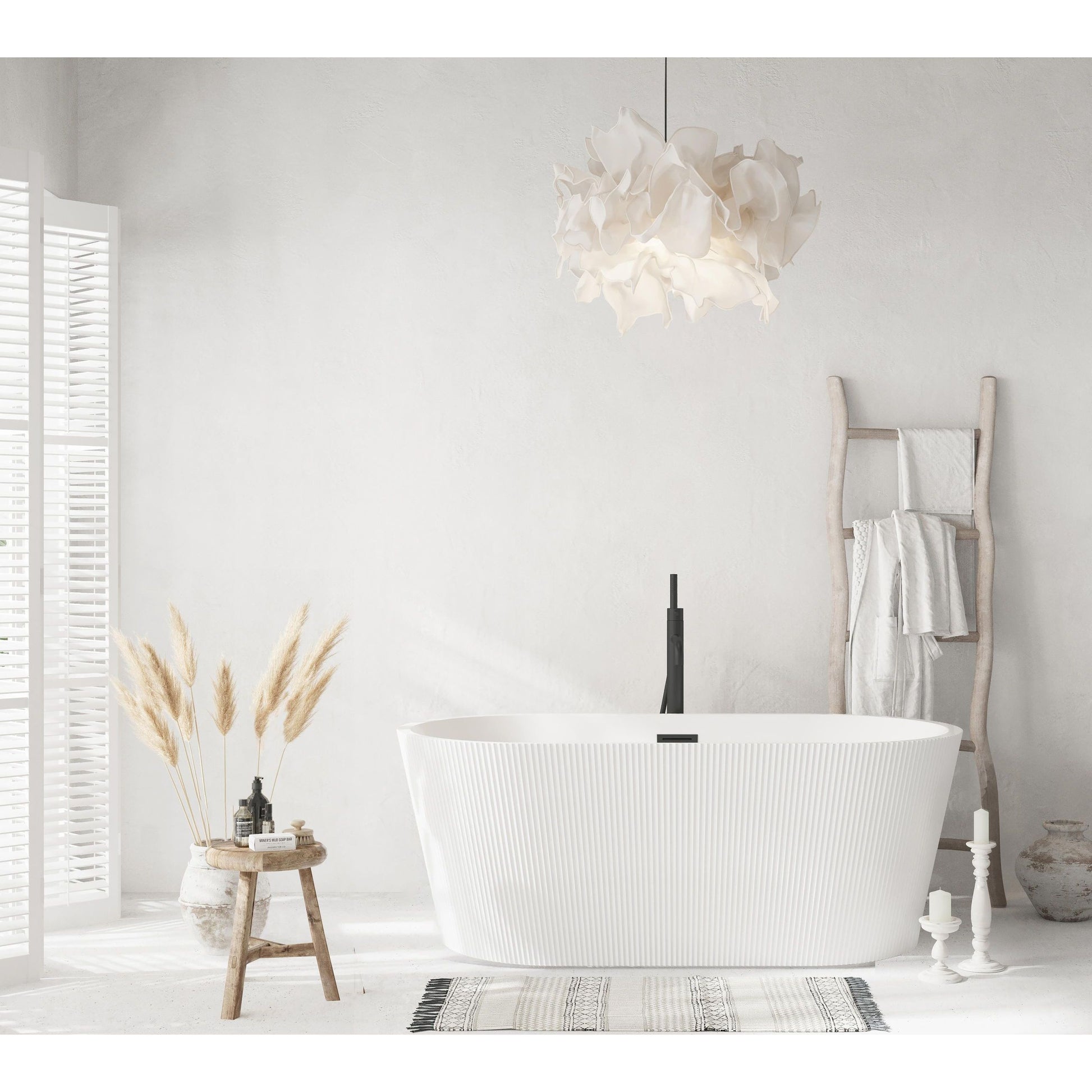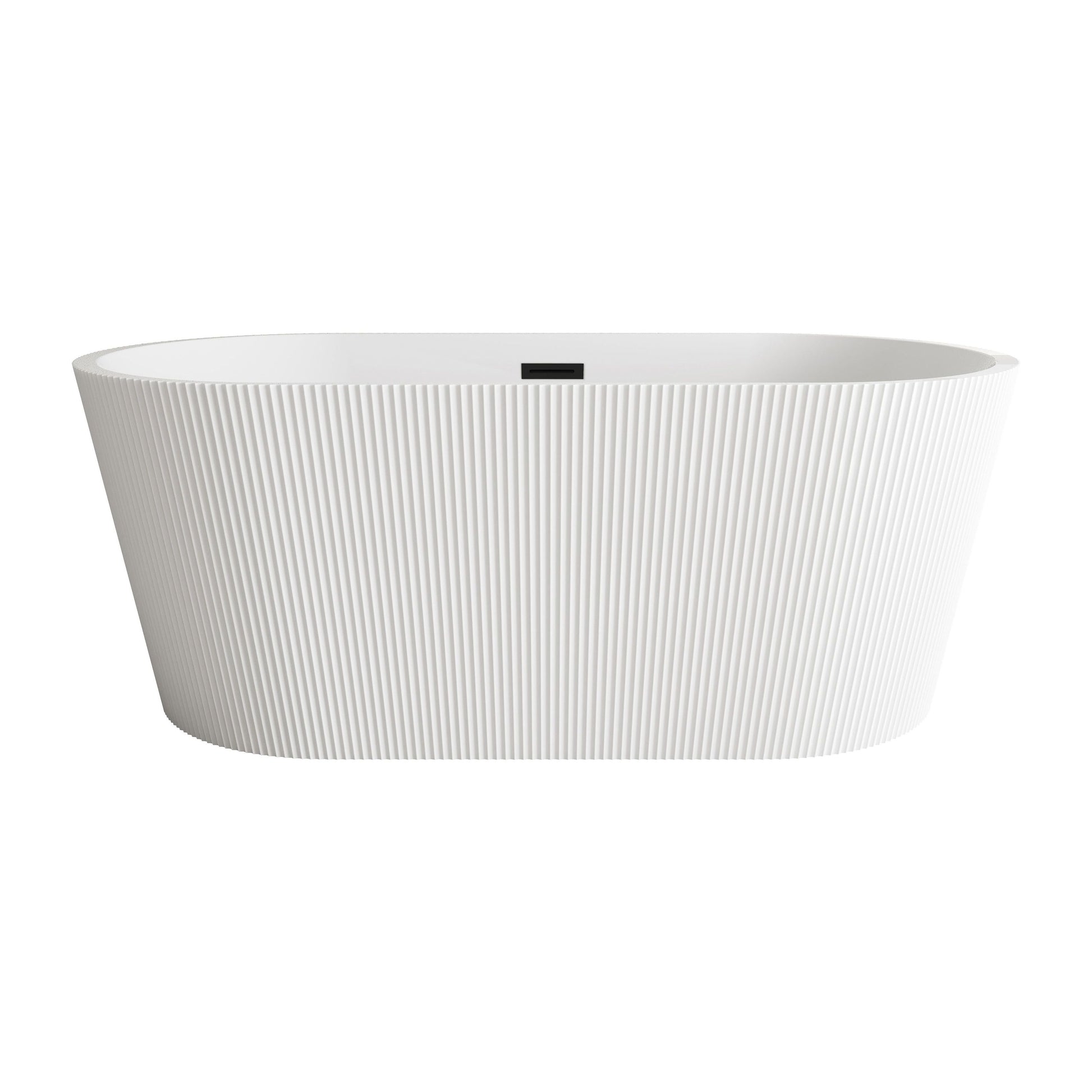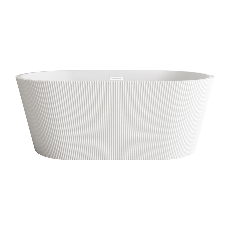 - Elevate your bathroom's aesthetic with this stunning freestanding soaking bathtub, featuring a vertical fluted exterior design that adds texture and sophistication to any space.