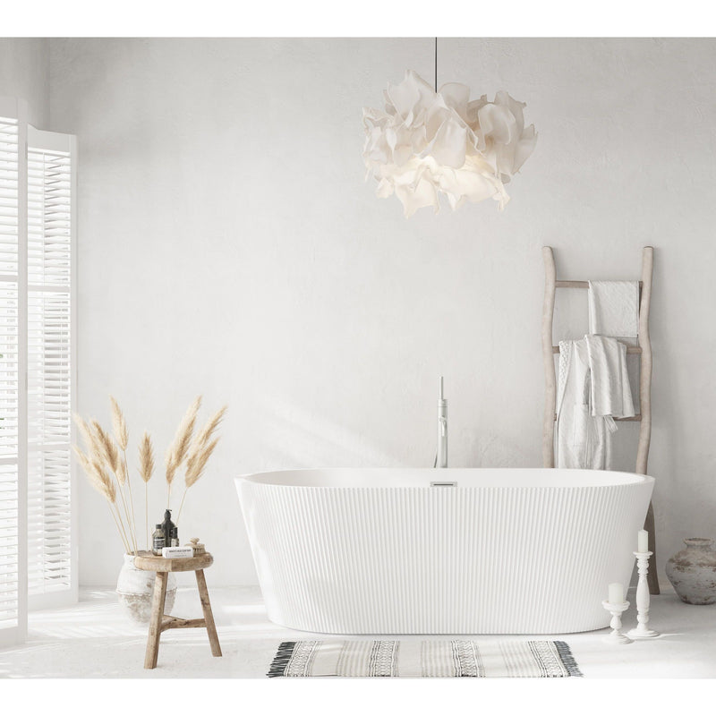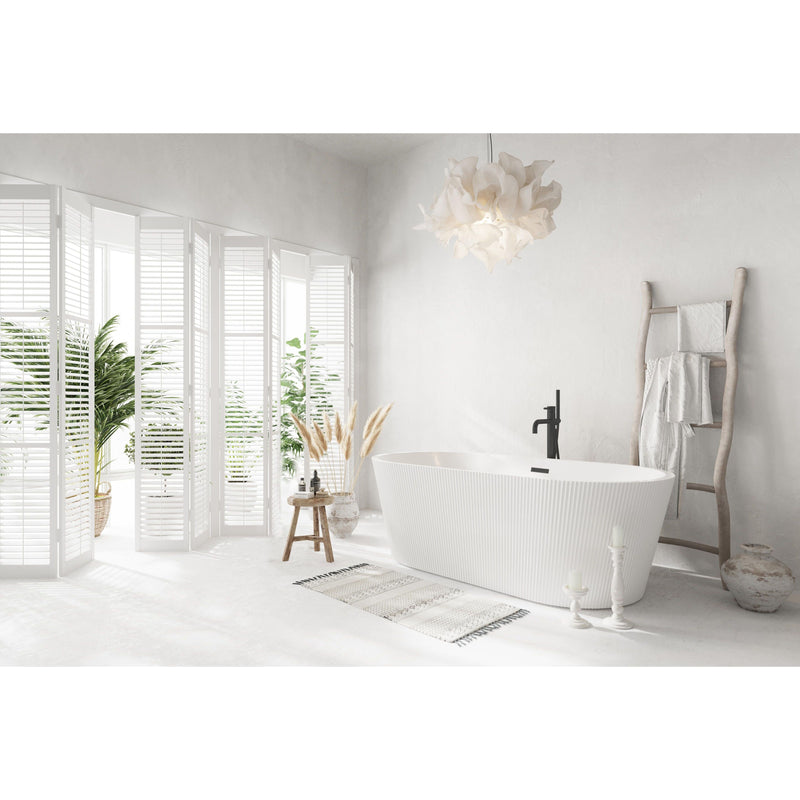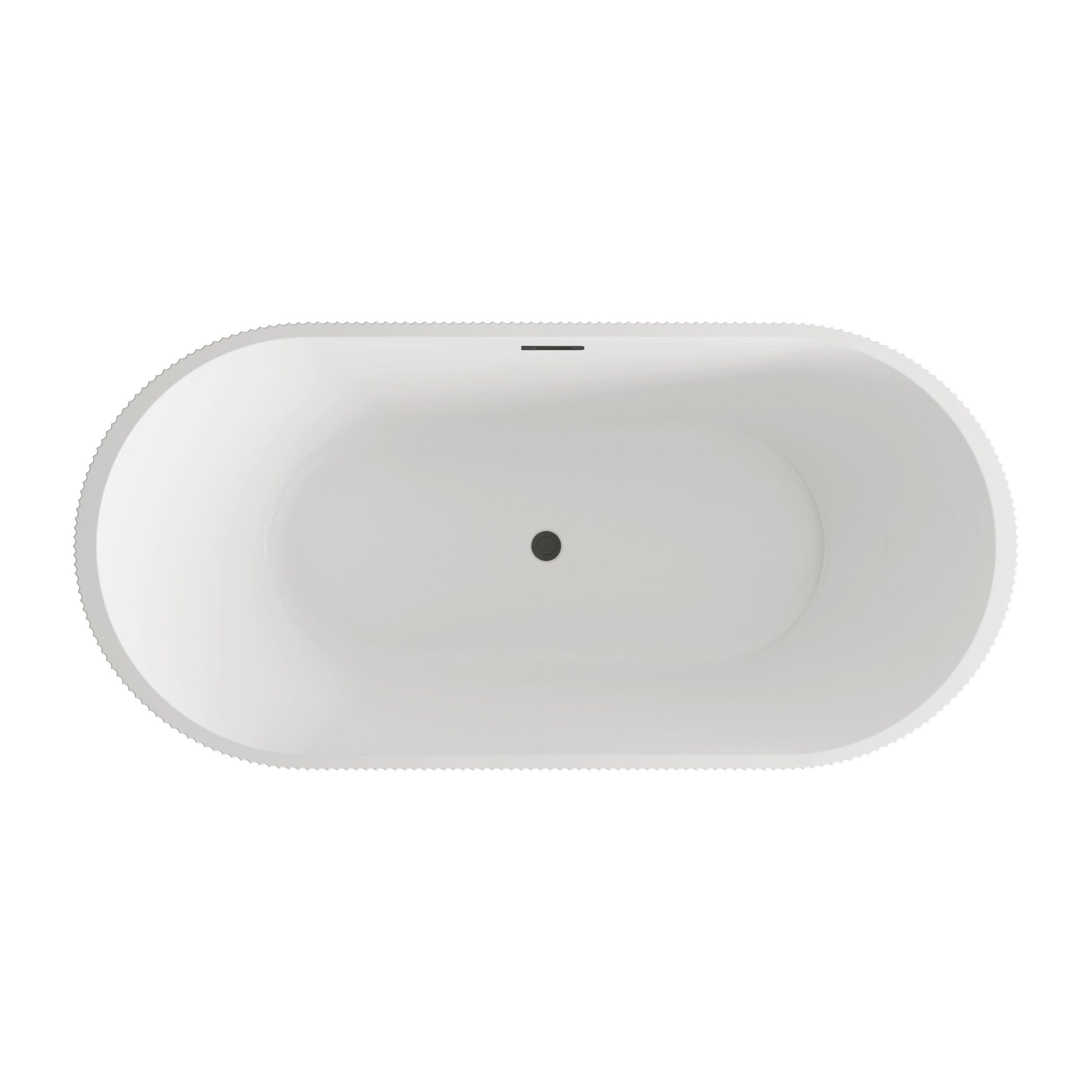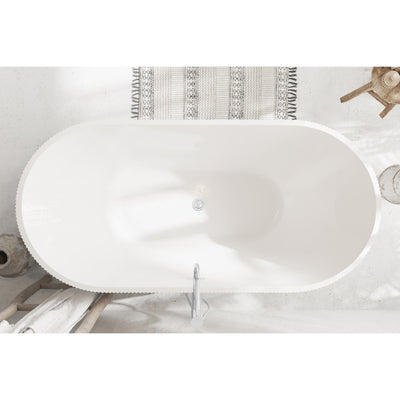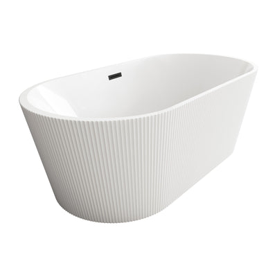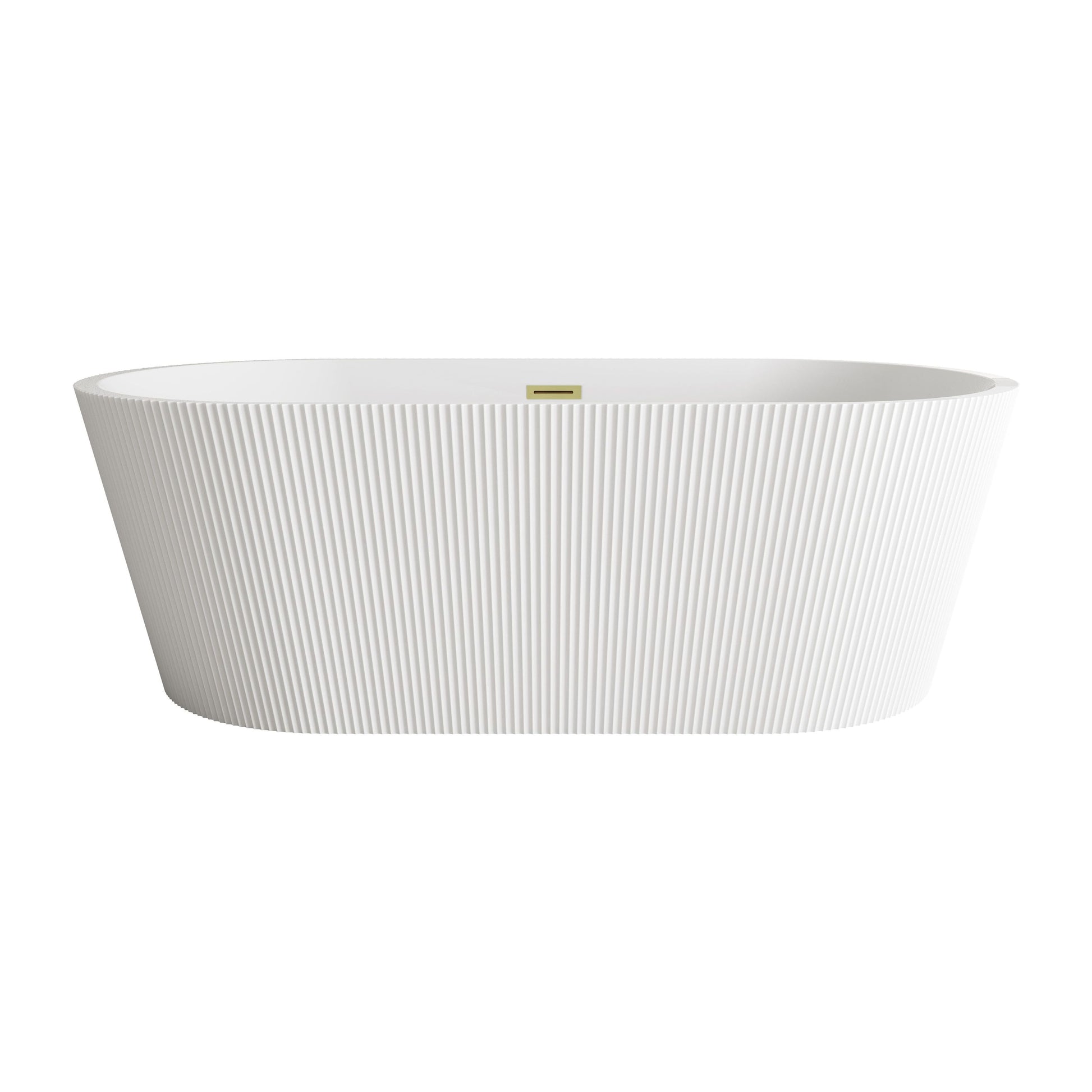 Immerse yourself in the ultimate relaxation experience with this elegant freestanding soaking bathtub, featuring a beautifully textured vertical fluted design that adds a touch of sophistication to your bathroom. The smooth, rounded rim offers comfortable arm support, making it the ideal spot to unwind. Equipped with a pop-up drain and integrated overflow, this tub seamlessly combines convenience and style. With a generous capacity and 15-inch soaking depth, it's perfect for those looking to indulge in a deep, luxurious soak. Available with customizable drain trim finishes like brushed gold, matte black, and more, this bathtub is designed to fit your unique style. Durable and easy to install with adjustable foot levelers, this tub is both a statement piece and a functional retreat in your home.
