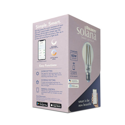 Installing your Bulbrite Solana Smart LED bulb is as simple as, well, as screwing in a light bulb! Solana Smart LED bulbs are WiFi enabled, and don't require a hub. That means no electricians, and no tools necessary. Set the scene for every moment of your day with customizable scheduling and settings, all through a simple app. With features like tunable brightness, color, and light temperate, how you set your bulb is entirely up to you! Control your lights with your own voice. Bulbrite Solana Smart LED bulbs are compatible with your Amazon Alexa or Google Assistant.