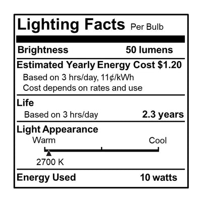 301010 - Dimmable Clear G12 Globe Incandescent Candelabra Light Bulb - 10 Watt - 50 Pack