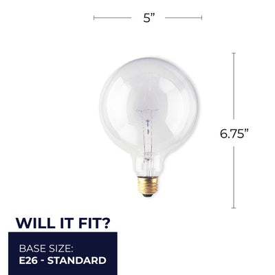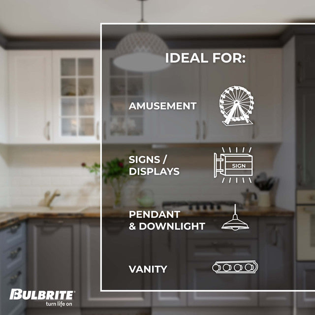 Swap these beautiful G40 clear glass bulbs into your fixtures for your next home improvement project. Incandescent bulbs are fully dimmable and these medium bulbs cast a warm white light. Compatible with any E26 screw base fixture. Comes with a pack of 12. Bulbrite helps you see, do, engage and experience every moment as it's meant to be. Bulbrite is here to inspire you to Turn Life On in a way that only the right, beautiful light can do.