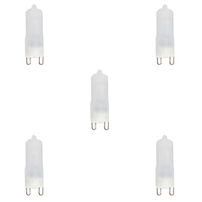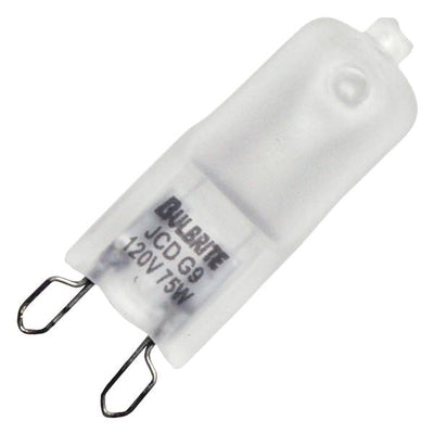- SPECIFICATIONS: Included in this box are five individual halogen bulbs. Each T4 bulb has a bi-pin G9 base. These bulbs are each 75 watts, 1300 lumens, 100 CRI, 2900k and fully dimmable. Each JC type bulb has a frost finish. Dimensions are 1.67 x 0.5 x 0.5 inches.