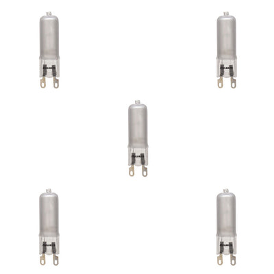 - SPECIFICATIONS: Included in this box are five individual halogen bulbs. Each T4 bulb has a G9 bi-pin base. Each bulb is 60 watts and rated at 2900K. These bulbs have a frosted finish for diffused lighting. They are fully dimmable.
