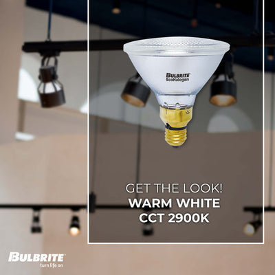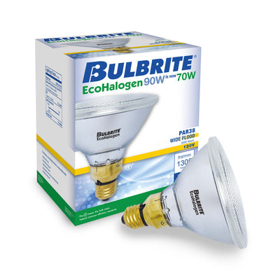 Bulbrite's Eco Halogen Series of Incandescent replacement bulbs are the ideal alternative to replace standard light bulbs being banned due to federal energy legislation (EISA). They offer the same light out and functionality as your standard household bulbs at the energy efficient standards required by the government. Included in each box are four individual 70-watt Halogen flood light. Each bulb is size PAR30 with a long neck. This is considered a wide flood light. Each bulb has 1070 lumens and an E26 base. Dimensions are 5.31 x 4.75 x 5.31 inches. For use indoors or outdoors.