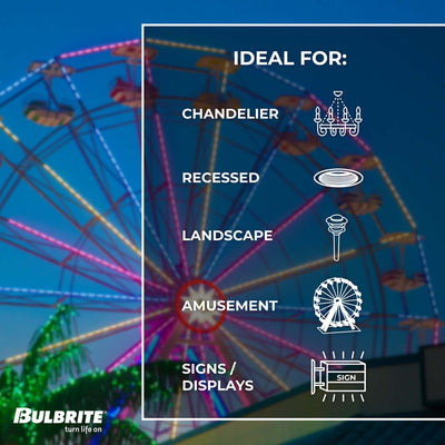 - MULTIPLE USES: These bulbs are typically used in chandeliers, pendants and sconces. They're also perfect as landscape lights, downlights and wall mounts. Ideal for use in residential and commercial applications. Small format LED mini bulbs are true retrofits for Halogen, Xenon and KX lamps.