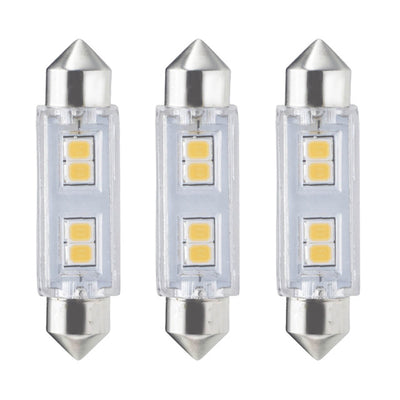 - SPECIFICATIONS: Included in this purchase are 3 T3 Mini LED light bulbs with a standard Festoon base. Each bulb is 0.8 watts with a clear glass finish for a bright and clear lighting effect.