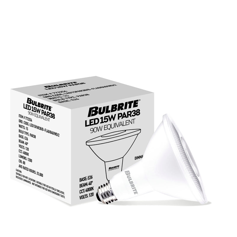 Bulbrite 772254 - Dimmable Wet Rated PAR38 LED Flood Light Bulb - 15 Watt - 4000K - 4 Pack