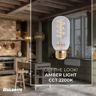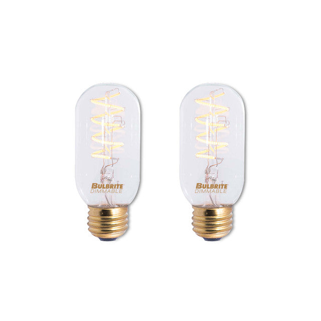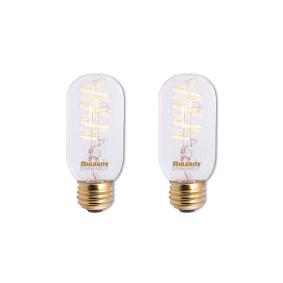 LED technology and the warmth of edison style bulbs combine in these designer T14 LED bulbs. The two pack ensures you'll have an extra on hand for any home improvement project, although these bulbs are rated to last longer than incandescent and halogen counterparts. These fully dimmable bulbs emit a warm white light and fit into any standard E26 screw base fixture.