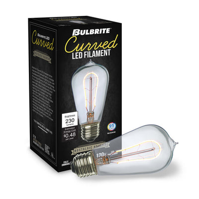 Bulbrite 776513 Filaments Curved ST18 LED Light Bulb - 4 Watt - 2200K - 2 Pack