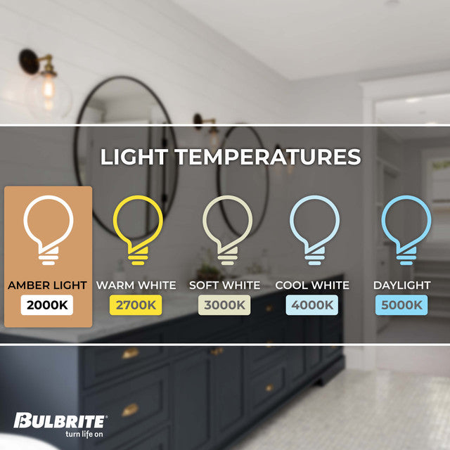 - SOFT WHITE LIGHT: With a Kelvin score of 2200 each, these bulbs emit a warm amber light. This rating means your lamp or ceiling fixture will emit a perfect amount of light that is not too dim and not too harsh. They're also fully adjustable meaning you can control the ambience of your room.