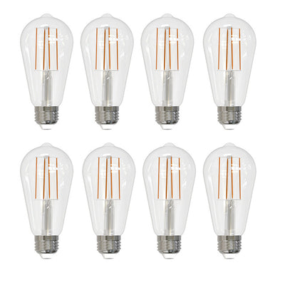 - SPECIFICATIONS: Included in this purchase are eight individual LED bulbs. Each ST18 bulb has a medium E26 screw base. Each bulb is 7 watts, 800 lumens and 2700K. These bulbs are fully dimmable with a clear globe, revealing its decorative LED filaments.