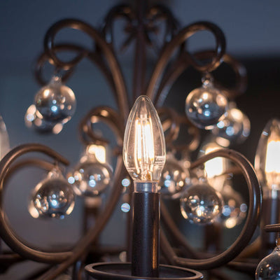 - STYLE MEETS FUNCTION: When styling your home's lighting fixture, don't sacrifice style. With these dimmable, clear filament candelabra bulbs, you won't have to. The curved shape of each bulb compliments and enhances your home light fixtures while casting the perfect glow.