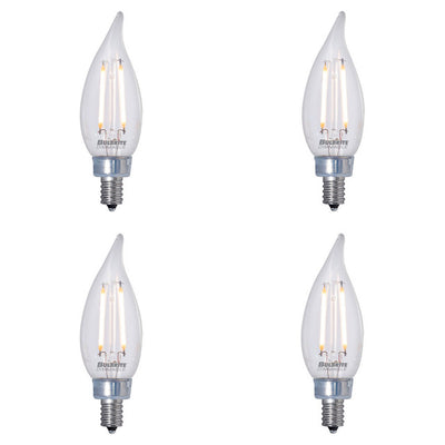 Bulbrite 776858 Filaments Dimmable Bent Tip CA10 LED Light Bulb - 2.5 Watt - 2700K - 4 Pack