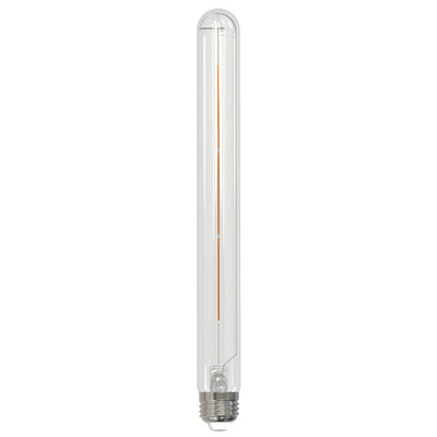 - SPECIFICATIONS: This is a 2-pack of 5-watt dimmable LED bulbs. The bulbs have a clear filament and a clear glass globe that lets you feature your bulbs prominently in your fixtures. Each T9 cylinder bulb has an E26 base to fit most standard lamps. Bulbs are 2700K and 90CRI for optimal lighting.