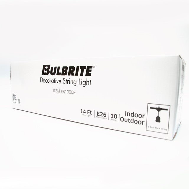 The Bulbrite string light kit with clear S14 bulbs is the perfect way to enhance any outdoor landscape or indoor space. This 14' string features 10 sockets with clear St14 bulbs, that set a classic, refreshing feeling in any space of your choosing, with a bulb shape that can bring a modern twist to any room. These lights are ideal for parties, outdoor events, weddings, and can even be used to bring new life and style to the interior of your home.