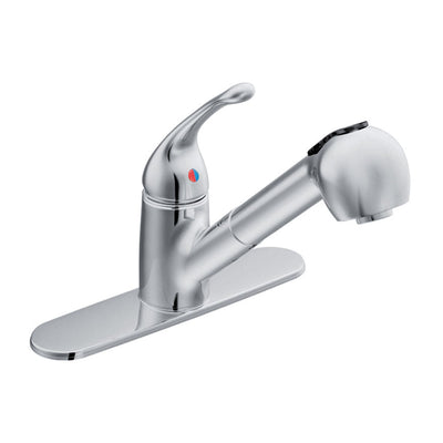 - Faucet pullout hose offers flexible water delivery and hose retracts with ease