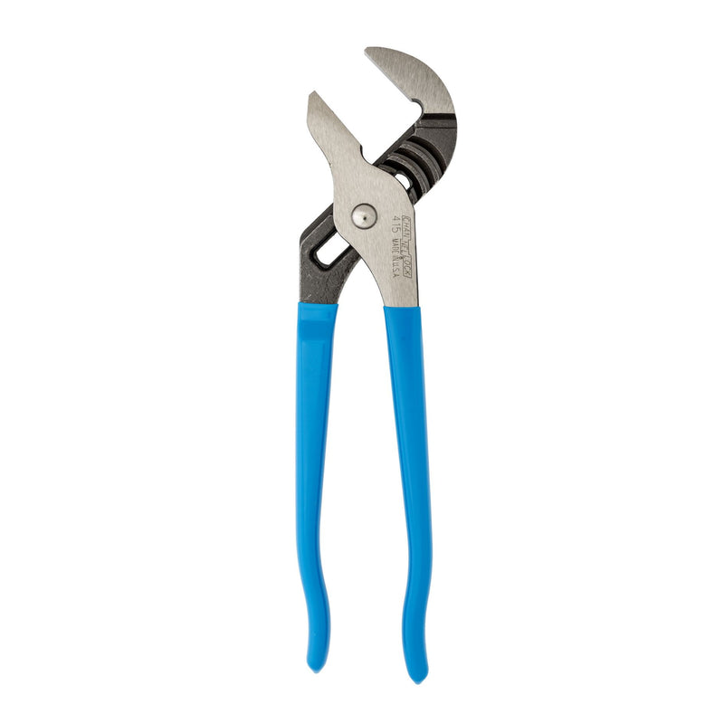 CHANNELLOCK 415 10" Tongue & Groove Pliers have all the versatility and strength of straight jaw pliers, but with a smooth jaw design to protect surfaces from scratching (PVC pipe, chromes, etc.). These pliers are built to last with a PERMALOCK fastener that eliminates nut and bolt failure and a patented reinforcing edge to minimize stress breakage. CHANNELLOCK Smooth Jaw Pliers are made in USA and forged from high carbon U.S. steel that is specially coated for ultimate rust prevention.