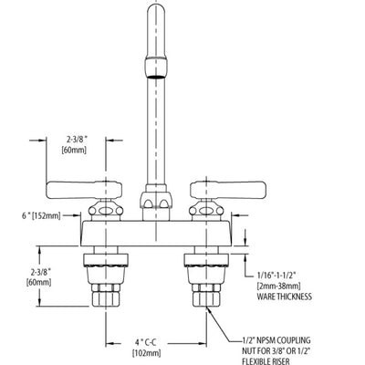 - 1/2" NPSM supply inlets and coupling nut for 3/8" or 1/2" flexible riser
