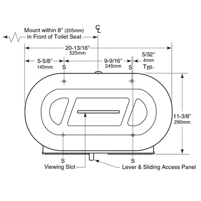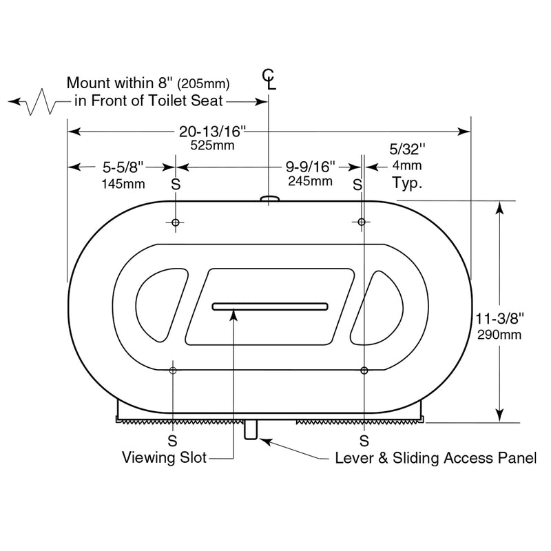 - Unique sliding access panel exposes one roll at a time for patron use, assuring uninterrupted, complete no-waste use of first roll before starting the reserve roll; allows easy roll change-over.