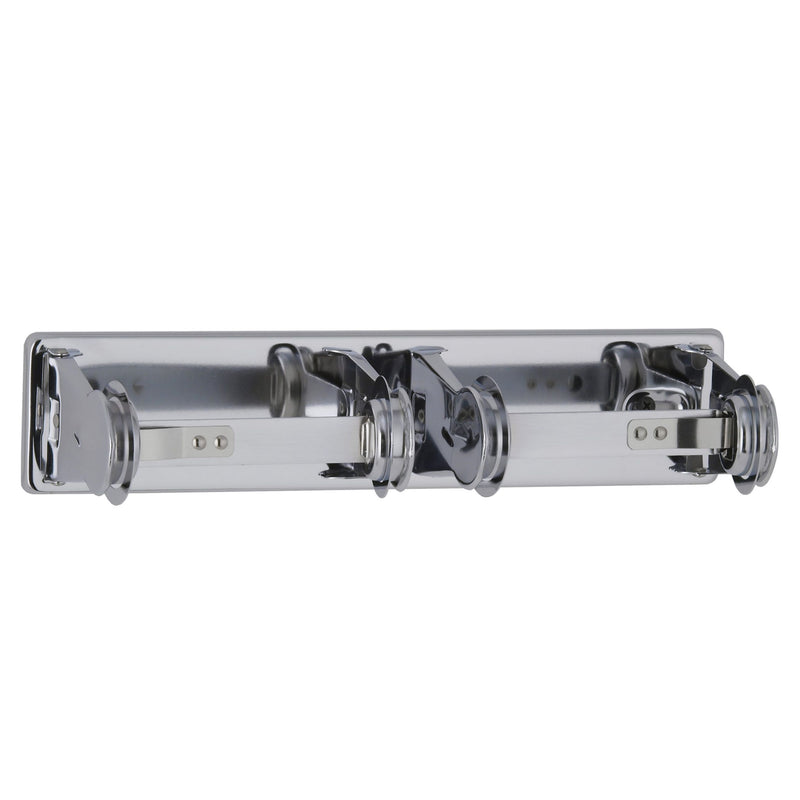 - Heavy-gauge chrome-plated steel with bright polished finish. Mounting bracket is 18-gauge (1.2mm). Equipped with vandalresistant self-locking mechanisms and four heavy-duty brake springs.