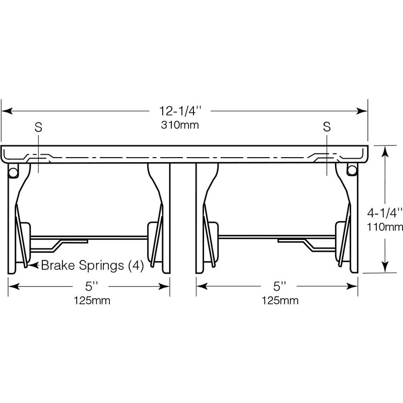 - Heavy-duty brake springs provide controlled delivery. Toilet tissue rolls will not spin freely. Eliminates waste. Accommodates two standard-core toilet tissue rolls up to 4-1/2" (115mm) diameter. Toilet tissue rolls cannot be removed from holder until empty.