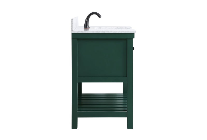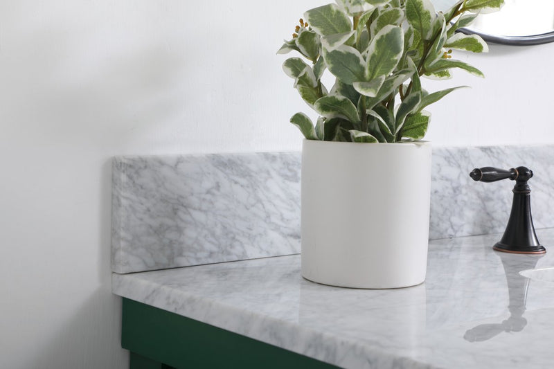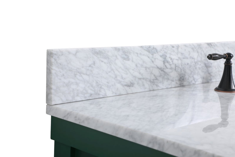 - Comes with an apron porcelain sink and durable marble stone top in Carrara white finish