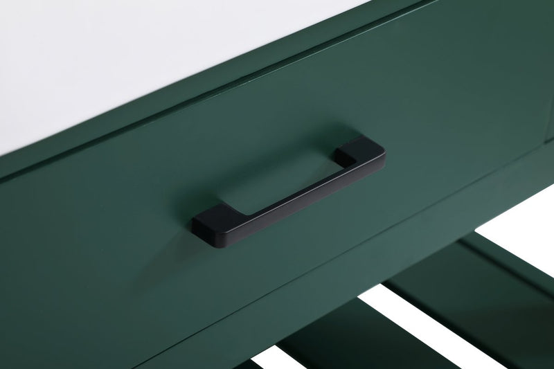 Make the most of your space with this farmhouse style bathroom vanity. Complements well with its beautiful finish, Carrara white marble countertop, and the contemporary slender handle bar that sits on the functional drawers with soft closing mechanism, allowing you to store an assortment of bathroom essentials. The lower shelf makes it the perfect space to hold new towels for your guests. This stylish vanity ensures both form and function in your bathroom for you and your guests.
