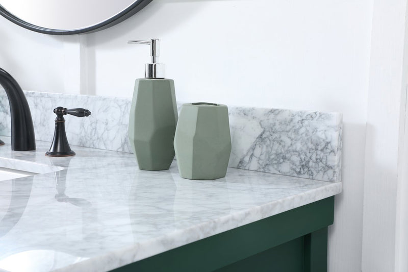 - Comes with an apron porcelain sink and durable marble stone top in Carrara white finish