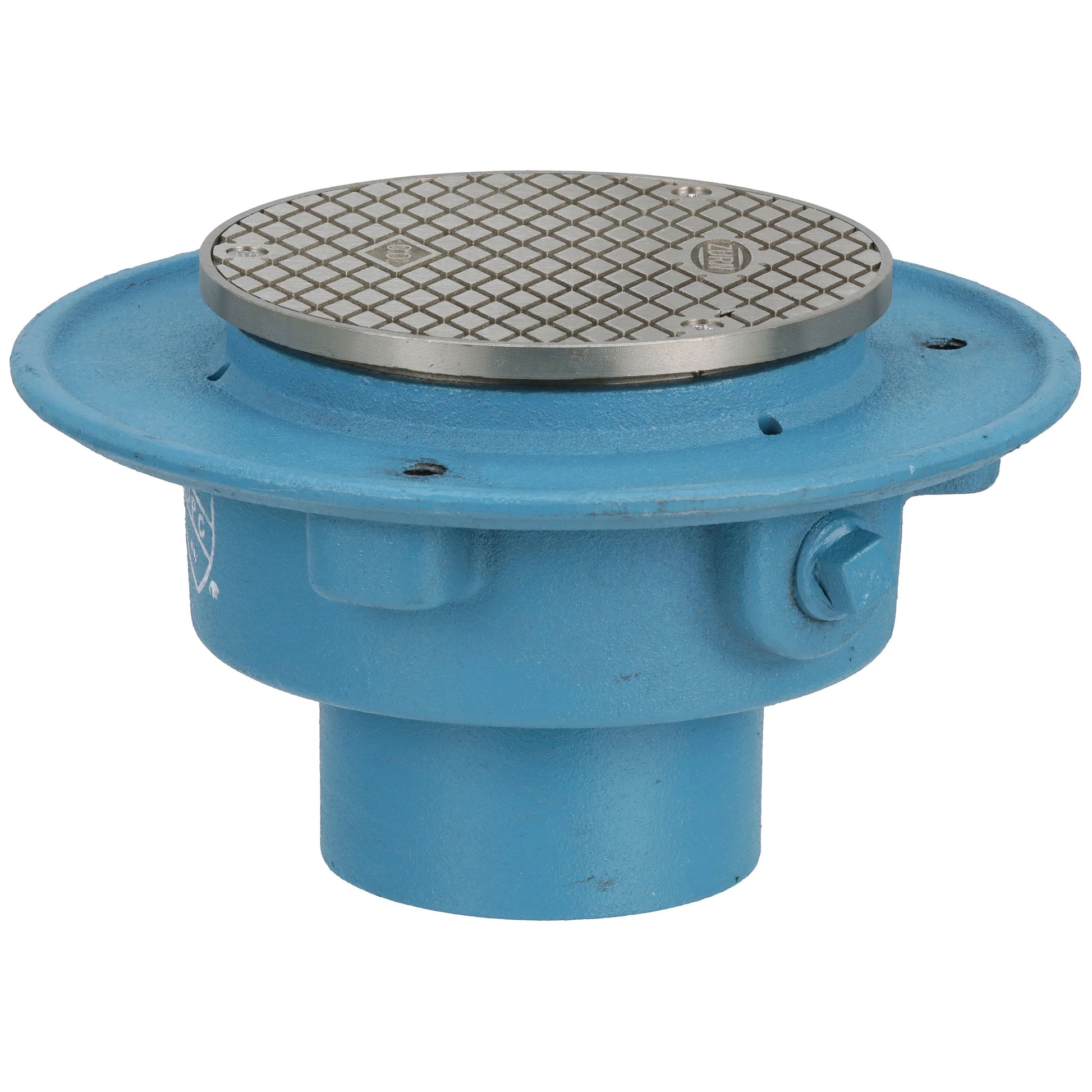 - Zurn's finished floor cleanout with cast iron body and nickel bronze top with 2" No-Hub Outlet