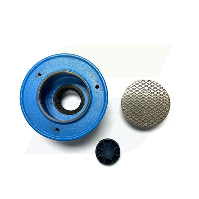 The cast iron body comes complete with a nickel, scoriated adjustable head. This cleanout is designed to easily adapt to either cast iron or plastic pipe.