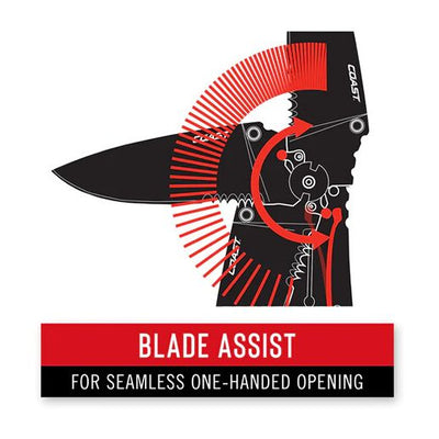 BLADE ASSIST: From closed to open in a flash. Knives with COAST’s Blade Assist mechanism use a proprietary opening mechanism to release the knife blade faster, smoother, and more safely than other blade-assist systems on the market. Operating Blade Assist is as simple as gently push the studs on the side of the blade until it pops open. Only available on knives equipped with Max-Lock.