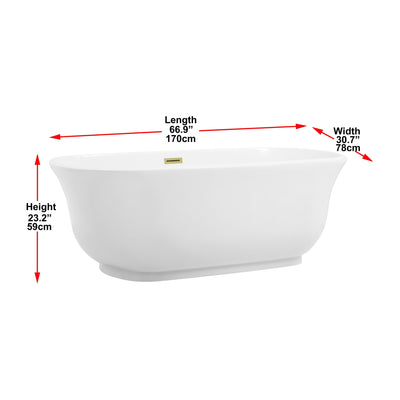 Indulge in the luxury of a spa-like experience right in your home with this stunning freestanding bathtub. Crafted from premium-quality acrylic, it is built to withstand daily use while maintaining its beautiful glossy finish. The stain and scratch-resistant surface ensures easy maintenance, keeping it bright and clean for years. The bathtub features gently sloped curves that hug your body, providing a deep and soothing soak. With a variety of metal trims to choose from, you can easily coordinate your tub with your faucet and bathroom fixtures. Easy to install and versatile in placement, this freestanding bathtub is the perfect centerpiece for any modern bathroom.