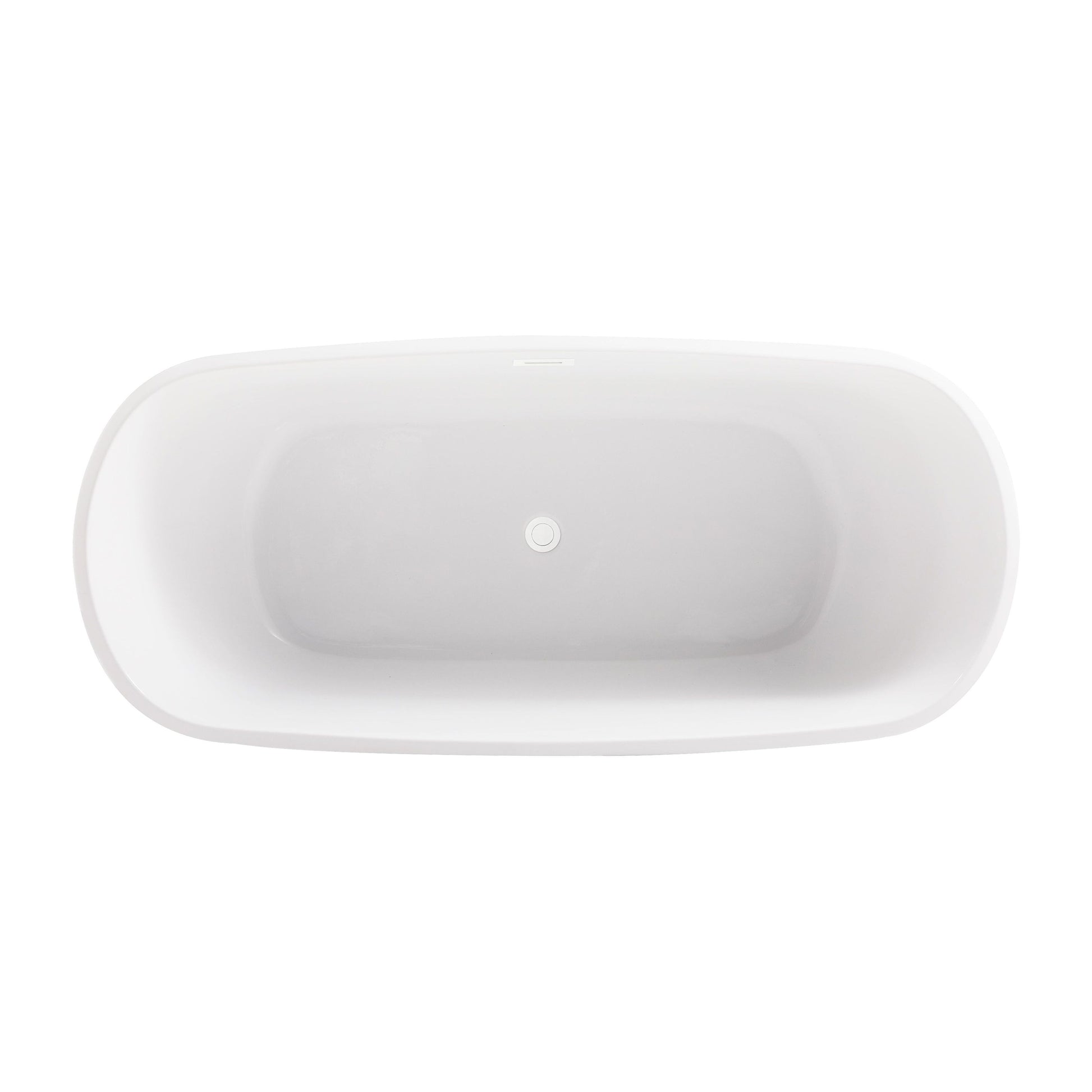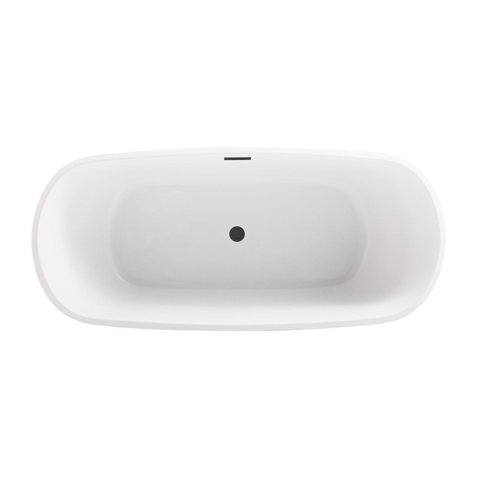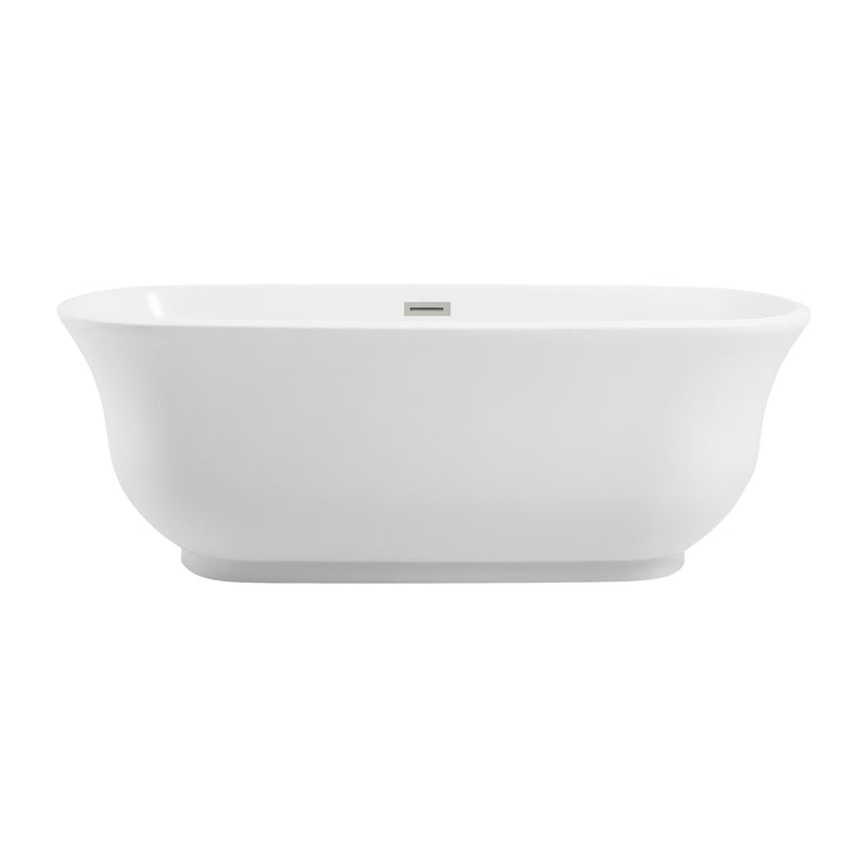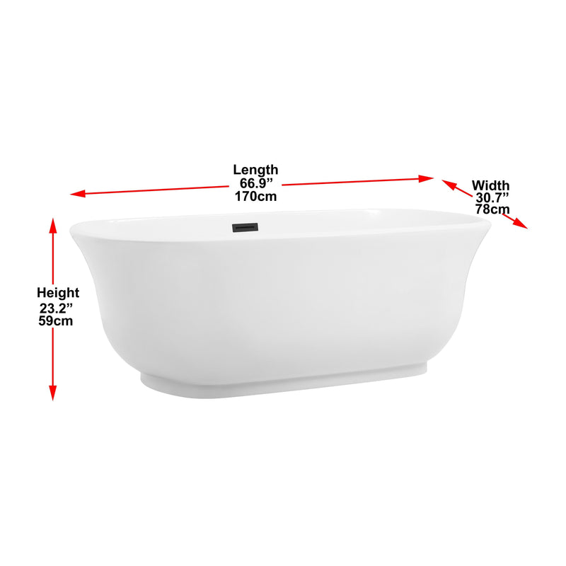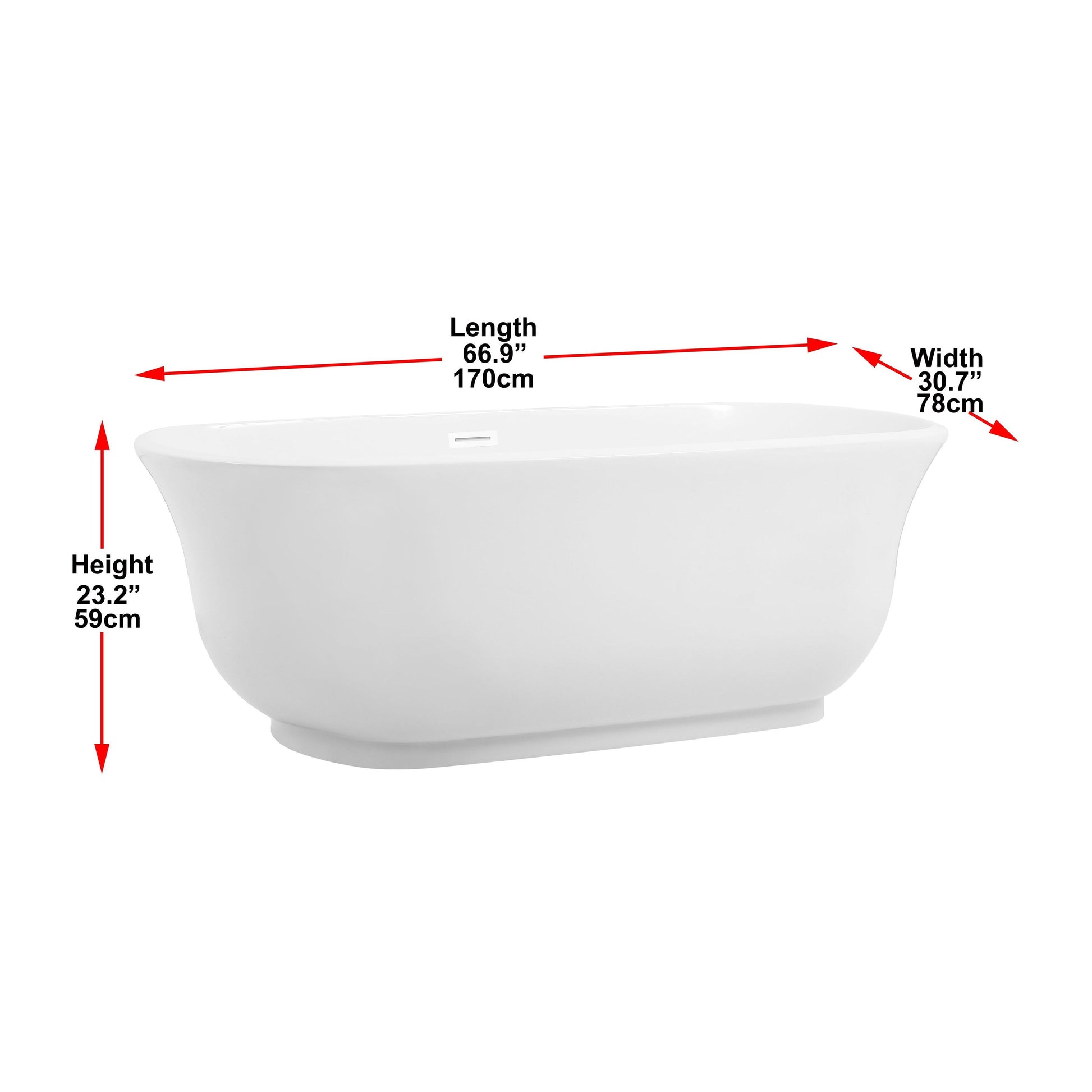 Indulge in the luxury of a spa-like experience right in your home with this stunning freestanding bathtub. Crafted from premium-quality acrylic, it is built to withstand daily use while maintaining its beautiful glossy finish. The stain and scratch-resistant surface ensures easy maintenance, keeping it bright and clean for years. The bathtub features gently sloped curves that hug your body, providing a deep and soothing soak. With a variety of metal trims to choose from, you can easily coordinate your tub with your faucet and bathroom fixtures. Easy to install and versatile in placement, this freestanding bathtub is the perfect centerpiece for any modern bathroom.