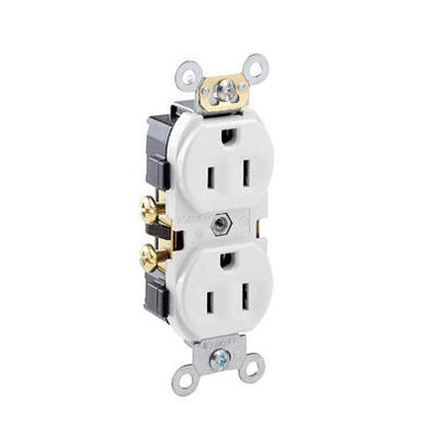Leviton CR15-W - 15 Amp Duplex Receptacle/Outlet, Commercial Grade, Self-Grounding