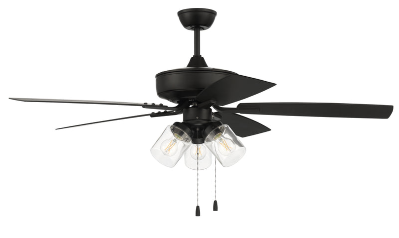 The ideal combination of excellent performance, exceptional value and timeless style, the wet rated Outdoor Pro Plus 52" ceiling fan featuring a clean motor with integrated clear glass enclosed Three light (3x7W non-dimmable LED bulbs included), updated canopy and straight blade arms is built for performance. The dual mount, standard 3-speed, reversible fan with custom 52" ABS blades is built to deliver performance with style.