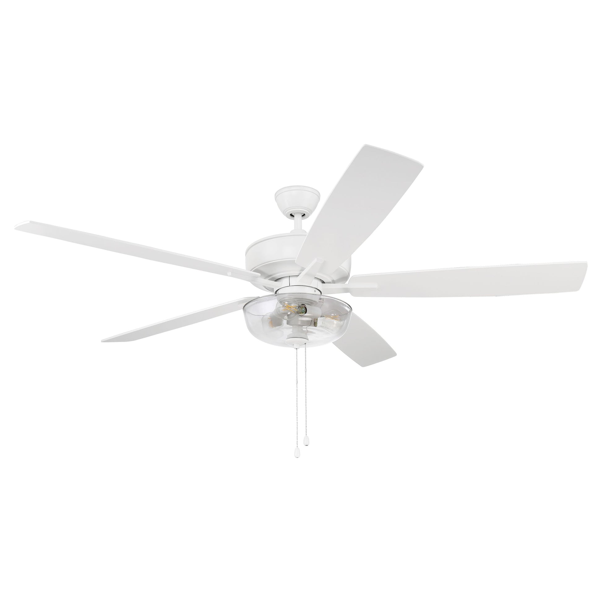 The ideal combination of excellent performance, exceptional value and timeless style, the NEW Craftmade Super Pro 60" ceiling fan with clear glass bowl light (dimmable LED bulbs included) featuring a clean motor, updated straight blade arms and canopy is built for performance. The dual mount, heavy-duty, 3-speed, reversible fan includes custom 60" reversible blades. Optional remote controls are available.