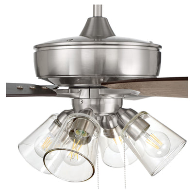 The ideal combination of excellent performance, exceptional value and timeless style, the NEW Craftmade Super Pro 60" ceiling fan with clear glass four light (dimmable LED bulbs included) light kit featuring a clean motor, updated straight blade arms and canopy is built for performance. The dual mount, heavy-duty, 3-speed, reversible fan includes custom 60" reversible blades. Optional remote controls are available.