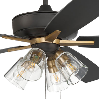 Craftmade Super Pro 104 60" 5 Blade Ceiling Fan with Light Kit - Flat Black Satin Brass