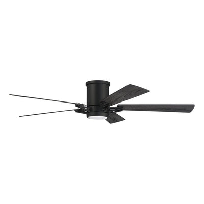 Ideal for low ceilings, the Craftmade 52" Wyatt flush mount ceiling fan features an energy-saving 6-speed, reversible DC motor housed in a clean cylinder body with architectural blade arms supporting 5 reversible custom blades, an integrated 18W dimmable LED light with optional lens cover, and is easily controlled with either the included remote control or the integrated WIFI featuring breeze and timer functions compatible for use with most smart home devices, smart phones and systems.
