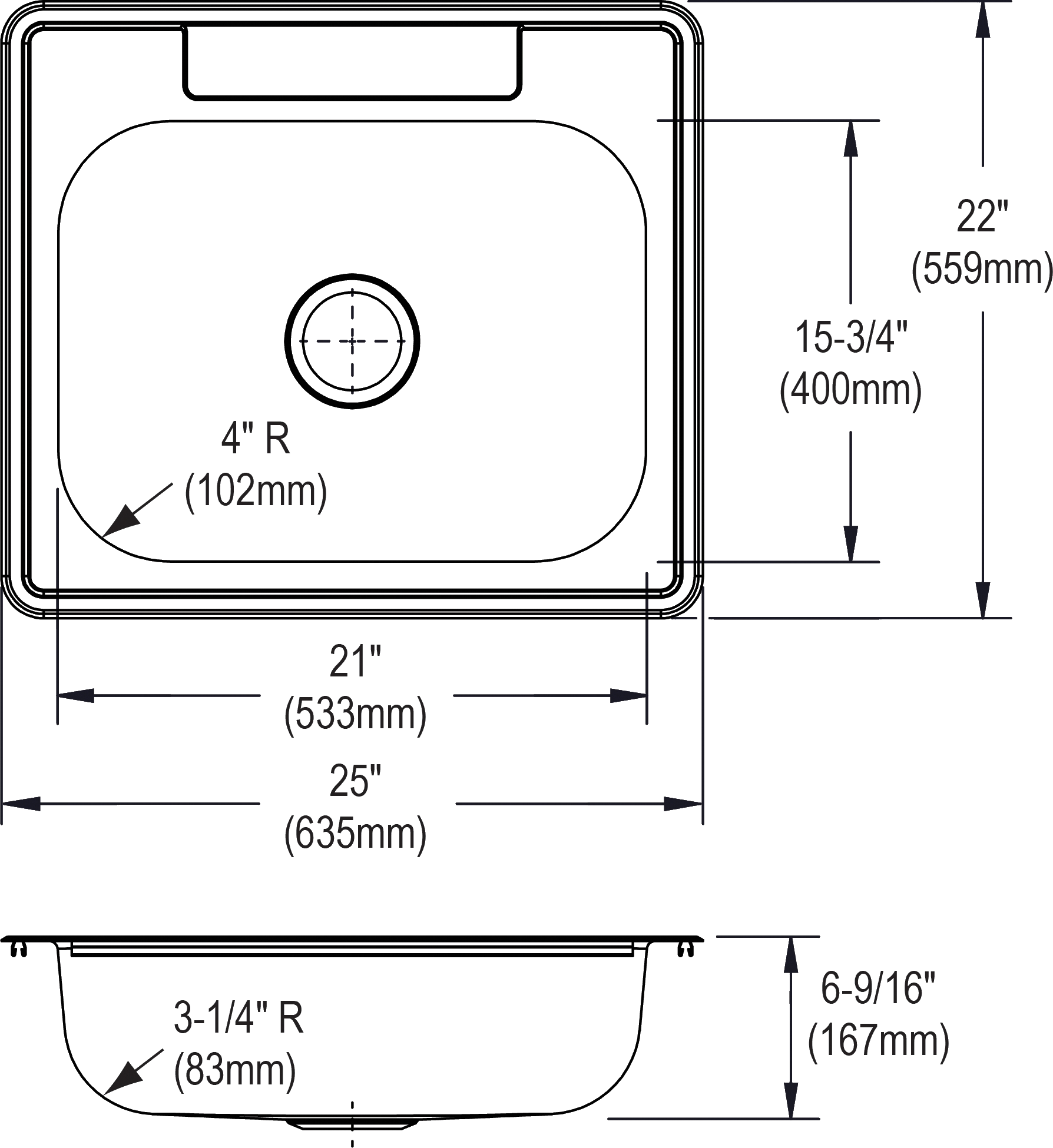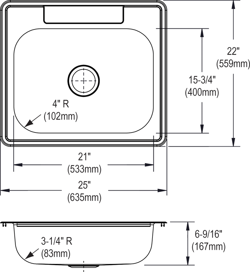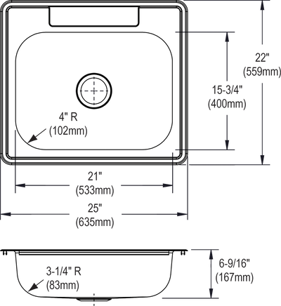Dayton Stainless Steel 25" x 22" x 6-9/16", Single Bowl Drop-in Sink