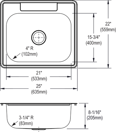Dayton Stainless Steel 25" x 22" x 8-1/16", Single Bowl Drop-in Sink