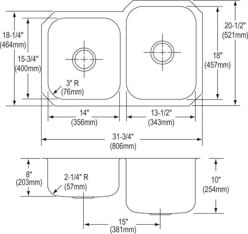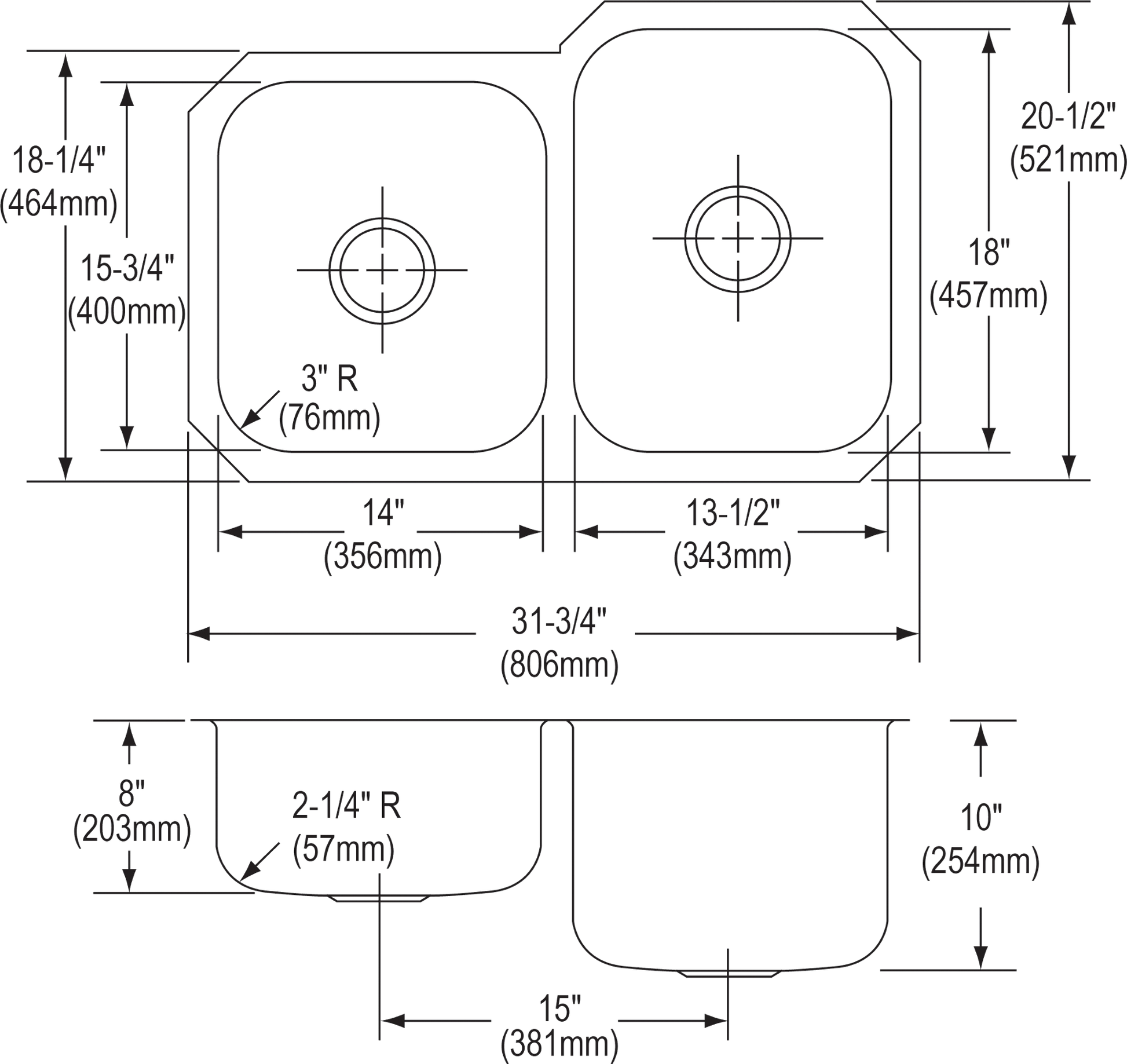 - UNDERMOUNT INSTALLATION: Sink is installed beneath the countertop creating a seamless appearance between the sink and the countertop.