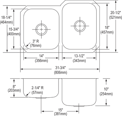 Elkay DXUH312010L - DXUH312010L Dayton Stainless Steel 31-3/4" x 20-1/2" x 10", Offset Double Bowl U