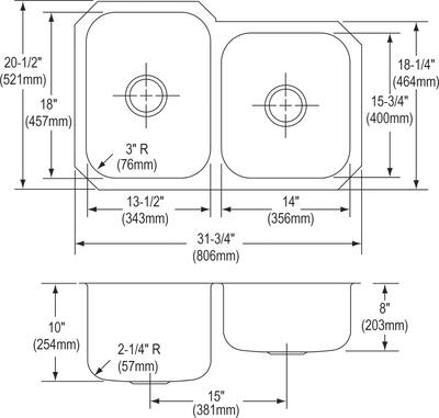 Dayton Stainless Steel 31-3/4" x 20-1/2" x 10", Offset Double Bowl Undermount Sink