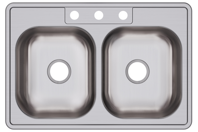 Dayton Stainless Steel 33" x 22" x 6-9/16", Equal Double Bowl Drop-in Sink